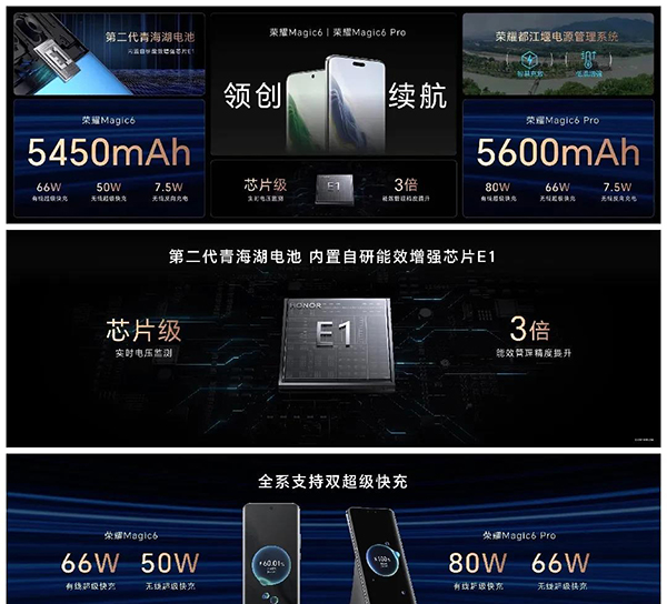 這個自研能效增強芯片E1,能夠優(yōu)化電池與硬件的配合,讓電量更加穩(wěn)定高效。同時,榮耀還配備了都江堰電源管理系統(tǒng),讓充電過程更加安全可靠。