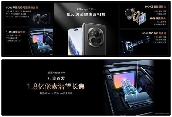 榮耀Magic6 Pro主攝、超廣角、長焦鏡頭像素是多少
