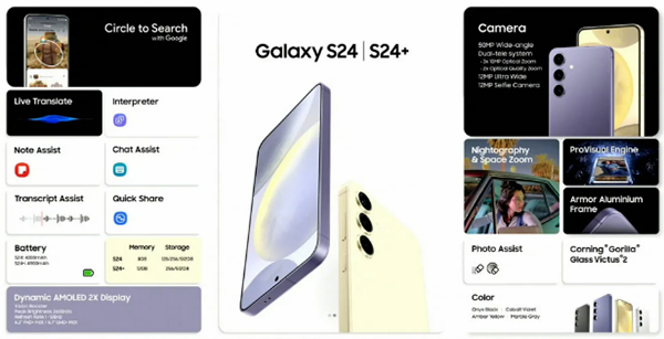 實(shí)話實(shí)說,三星Galaxy S24系列外觀設(shè)計(jì)很好看,有特色,看了一下,這次是全系搭配直屏設(shè)計(jì)、全系標(biāo)配高通驍龍8Gen3芯片、全系標(biāo)配15W無線充電、全系標(biāo)配IP68防水和USB 3.2 Gen1以及標(biāo)配超聲波指紋和NFC。
