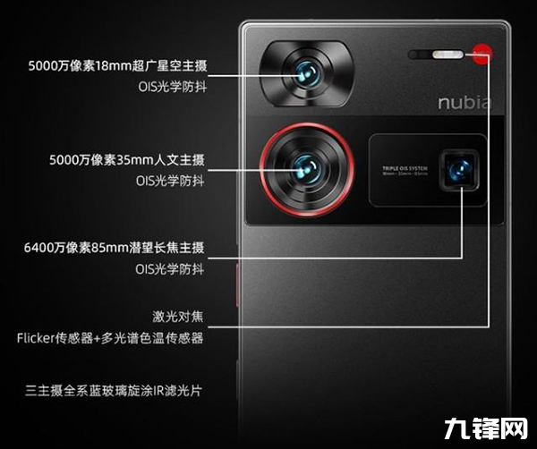 努比亞Z60 Ultra搭載了全新設(shè)計的泰山影像系統(tǒng),后置高定光學(xué)三主攝,分別為18mm星空主攝、35mm人文主攝、85mm人像鏡皇。