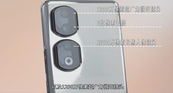 在這個(gè)影像方面,榮耀90 Pro的后置攝像頭模組由三顆鏡頭組成,分別是2億像素主攝,3200萬(wàn)像素長(zhǎng)焦人像鏡頭以及1200萬(wàn)像素超廣角微距鏡頭,前置兩顆挖孔式鏡頭,分別為5000萬(wàn)像素人像鏡頭和景深鏡頭。