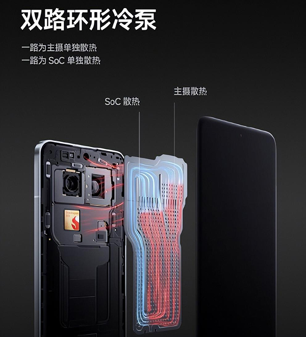 在散熱方面,這次采用的是全新的雙路環(huán)形冷泵,面積高達4000mm2,既能在重載游戲中提供強大的散熱能力,還以可以保證相機專屬的散熱環(huán)路,讓長時間穩(wěn)定錄像提供保障。