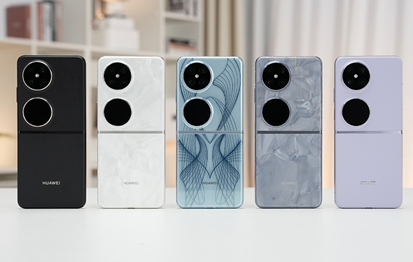 在這個(gè)設(shè)計(jì)上,這次的華為Pocket2有四款配色,分別為大溪地灰、洛可可白、芋紫(素皮)、雅黑(素皮),后蓋設(shè)計(jì)依舊是采用雙環(huán),亮點(diǎn)就是外屏支持常亮顯示,也是小折疊屏手機(jī)里首次,內(nèi)屏雖然采用前置單攝,但是支持隔空手勢(shì)。
