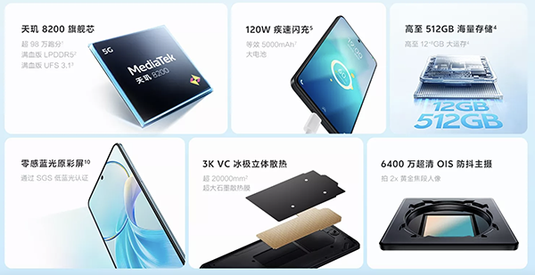 續(xù)航:5000mAh電池,支持120W有線快充,10分鐘充電50%,支持30W融合快充協(xié)議和65WPD,支持7.5W反向充電;