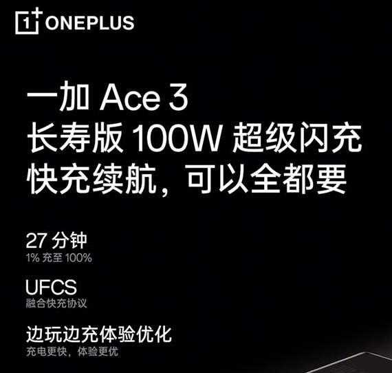 支持,這次的一加Ace3不但配置了100W的有線快充,并且還支持UFCS融合快充,可以不挑充電頭和充電線激活快充,出門在外使用更方便。