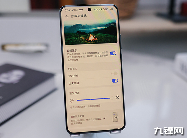 除了低亮度高頻PWM調(diào)光外,在設置的顯示和亮度選項的護眼與睡眠里還有兩個護眼功能,第一個是正常的低藍光模式,為我們提供硬件級的低藍光方案。