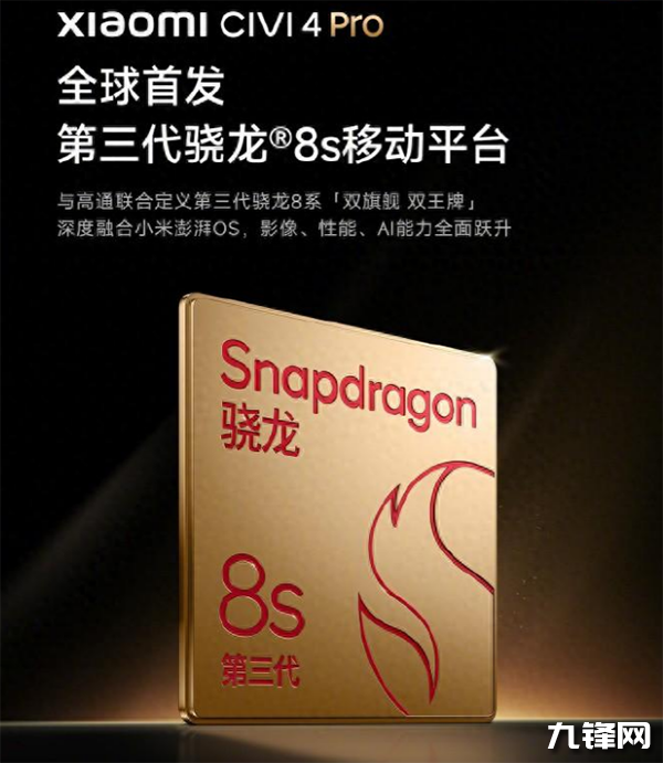 在大家關(guān)心的核心性能上,這個(gè)全新的小米civi4 Pro全球首發(fā)驍龍8s Gen3處理器,深度融合澎湃OS,號(hào)稱“影像、性能、AI能力全面躍升”。