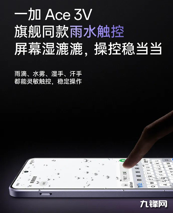 支持,一加Ace3V配置了旗艦同款的雨水觸控功能,因此也是支持濕手觸控操作的。