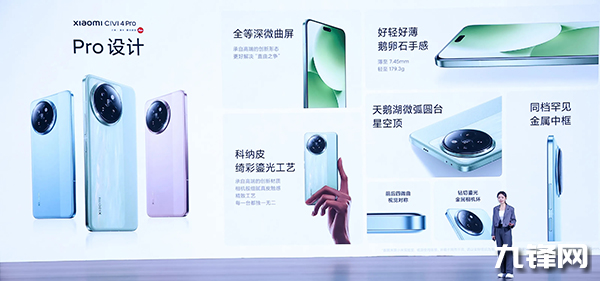在小米14 Pro上廣受好評(píng)的四等深微曲屏,這次也是下放到了這個(gè)civi系列的手機(jī)上了,這種屏幕兼具曲屏的開(kāi)闊視野和直屏的硬朗手感。整機(jī)的重量?jī)H為179克,厚度為7.45毫米,便攜性非常出色。