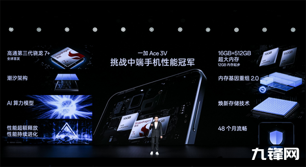 在配置上,一加Ace3V首發(fā)搭載了這個第三代驍龍7+處理器,并且還搭載自研「潮汐架構(gòu)」和全新AI算力模型,通過AI能力寫入SoC底層智能分配算力資源,實(shí)現(xiàn)高性能與低功耗的平衡,以及自研「內(nèi)存基因重組技術(shù)2.0」和「煥新存儲技術(shù)」,實(shí)現(xiàn)多達(dá)29個應(yīng)用的72小時后臺?;?。