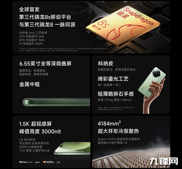 在硬件配置上,這個(gè)小米civi4 Pro首發(fā)搭載第三代驍龍8s處理器,跑分應(yīng)該在155萬左右,并且搭配的是LPDDR5X規(guī)格的內(nèi)存 + UFS 4.0規(guī)格的閃存,F(xiàn)BO煥新存儲(chǔ),還有4184mm2小米環(huán)形冷泵散熱。