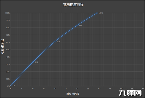 來看看實(shí)際的充電測試體驗(yàn)吧,手機(jī)從1%開始充電,10分鐘電量充至33%,20分鐘電量過半,達(dá)到61%,半小時電量充到了83%,最終完全充滿用時39分鐘。