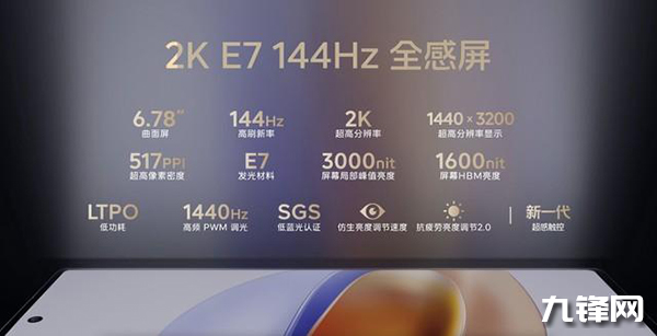 iQOO 12 Pro首發(fā)了6.78寸三星E7屏,擁有2K分辨率并支持144Hz高刷新率,讓每一幀都清晰可見,長寬比20:9,屏幕色深10位,最高支持144Hz刷新率,運用LTPO自適應(yīng)的刷新率控制技術(shù)。
