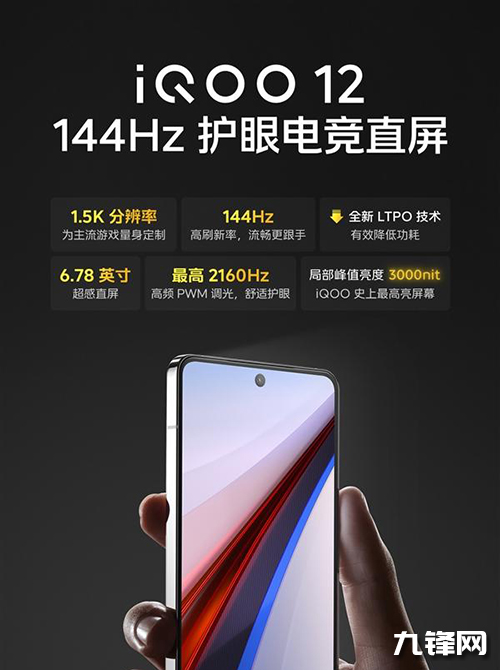 它的屏幕是由維信諾供應(yīng)商提供的,并且是最新旗艦發(fā)光材料VM7,局部峰值亮度達(dá)到了驚人的3000nit,這也是iQOO史上最高亮度屏幕、1.5K分辨率、144Hz超高刷率、6.78英寸大屏大視野、1.54mm極窄黑邊、全新LTPO技術(shù)、2160Hz高頻PWM調(diào)光,都是妥妥的頂級素質(zhì)。