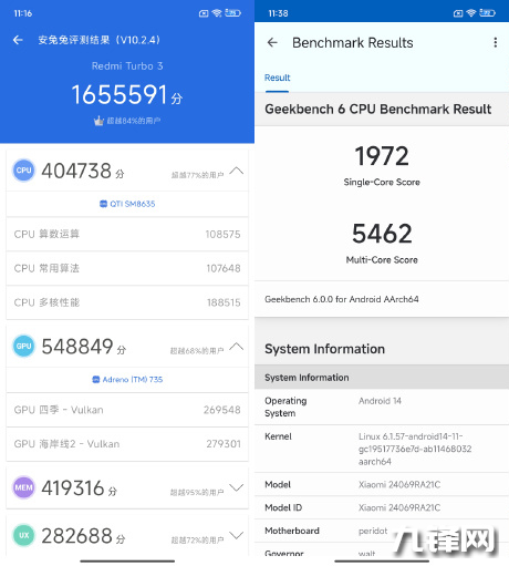 紅米Turbo3性能跑分是多少