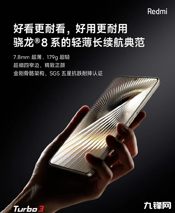 179克,紅米Turbo3整機的重量是179克,這是相當輕的一款手機了,并且它的厚度也只有7.8mm,可以說是十分輕薄了。