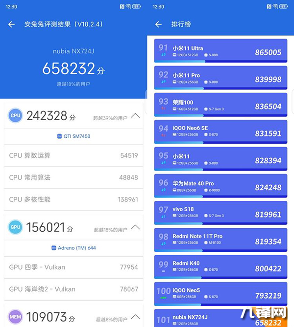 65萬(wàn)分,在安兔兔V10中跑分是65萬(wàn)分。
