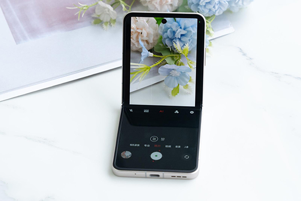得益于折疊屏的形態(tài),努比亞Flip可以實(shí)現(xiàn)多角度的懸停拍攝,將手機(jī)作為一個(gè)支架擺在各個(gè)平臺(tái)上使用,比單獨(dú)帶一個(gè)支架要方便不少,還能調(diào)整不同的拍攝角度,隨心拍攝,而且還有內(nèi)外兩塊屏幕,內(nèi)外屏幕可以一起顯示,被拍攝的人也可以看到鏡頭中的畫面,幫助拍攝者拍出更滿意的照片。
