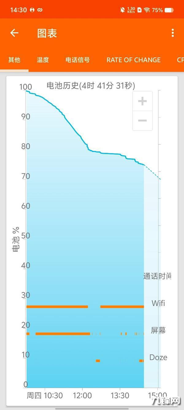 第二天9:45開始打開藍(lán)牙定位、聲音和亮度均50%的情況下,B站在線看1080P視頻1小時、英雄聯(lián)盟手游1小時、QQ音樂音量50%外放在線聽歌1小時、期間還拍了幾張照片、測試完這些項目,時間就已經(jīng)來到了下午兩點半,還剩75%的電量,也就意味著高強度使用一上午,僅僅耗費25%的電量,用不完,一天根本用不完。