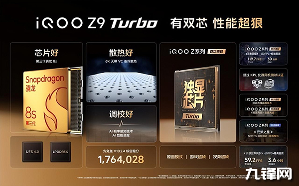 性能方面,核心配置上,iQOO Z9 Turbo搭載了第三代驍龍8s移動(dòng)平臺(tái),12GB 內(nèi)存起步,至高 16GB,256GB存儲(chǔ)起步,至高512GB,規(guī)格上采用了LPDDR5X、UFS4.0。