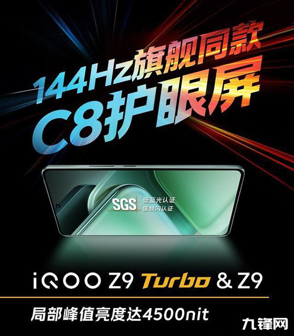有,iQOO Z9配置的是1.5K分辨率的OLED直屏,并且支持144Hz刷新率,最高支持3840Hz超高頻PWM調(diào)光,并且通過了SGS低藍(lán)光和低頻閃雙認(rèn)證,在護(hù)眼方面做的是相當(dāng)不錯的。