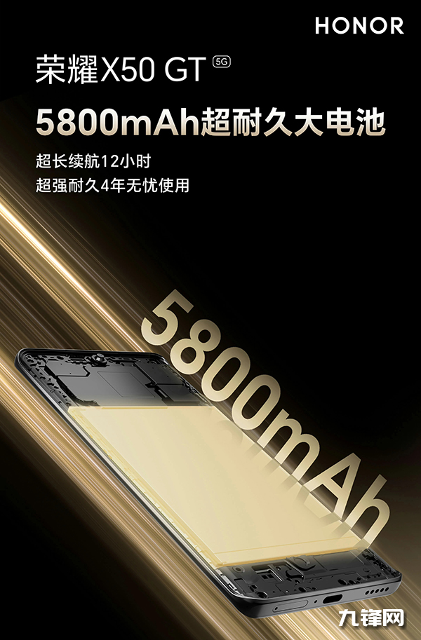 作為一款主打性能游戲的手機(jī),這款榮耀X50 GT搭載5800mAh超耐久大電池,超長(zhǎng)續(xù)航12個(gè)小時(shí),一整天不用為電量擔(dān)心,同時(shí),現(xiàn)在手機(jī)的換機(jī)頻率很低,電池耐用很重要,官方還保證電池超強(qiáng)耐久,至少讓大家放心用4年。