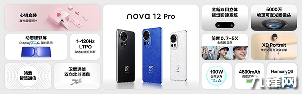 這次的華為nova12 Pro在外觀設計上和nova12 Ultra基本相同,但后殼材質不同,取消了印花素皮和一體化攝像模組設計,華為nova12 Pro擁有12號色、耀金黑、櫻語粉、櫻語白4款配色,除耀金黑外,后殼都采用落櫻圖案設計,其中櫻語粉配有心鑰套裝,采用特殊禮盒設計。