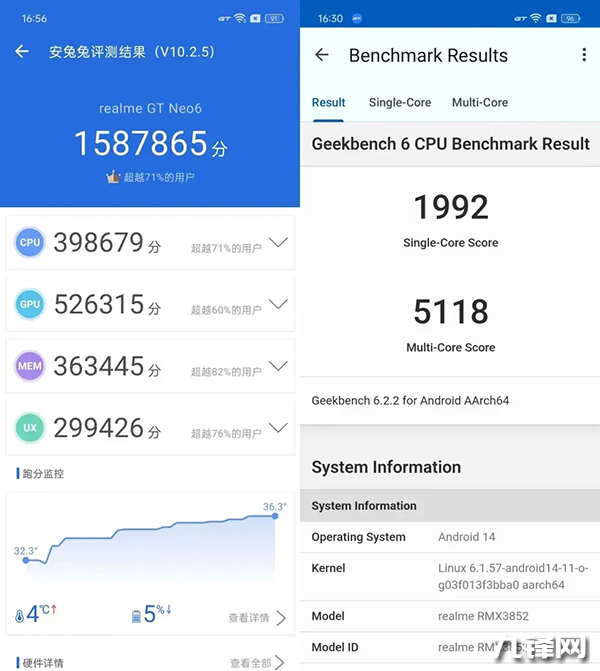 realme真我GT Neo6性能跑分是多少