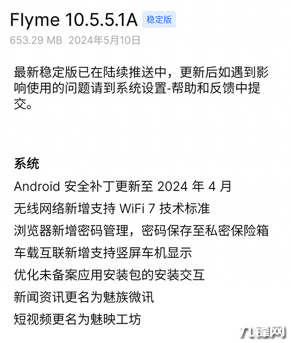 在WIFI方面,魅族21 Pro默認是不支持WIFI7的,不過通過OTA升級更新之后就支持了,現(xiàn)在魅族21 Pro推送Flyme 10.5.5.1A穩(wěn)定版,并且新增WiFi7功能,也就是說,升級系統(tǒng)之后就支持了。