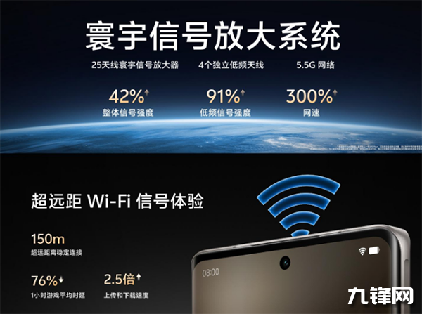 在提升性能的同時降低能耗。擁有行業(yè)領先的通信能力,搭載全新升級的25天線寰宇信號放大系統(tǒng),低頻信號強度提升91%,同時支持網(wǎng)速3倍提升的5.5G網(wǎng)絡。