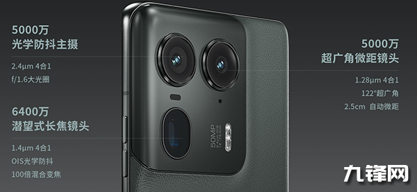 主攝像頭:5000萬像素,豪威OV50H傳感器,1/1.3英寸,1.2μm,F(xiàn)1.6光圈,等效焦距23mm,OIS光學(xué)防抖
