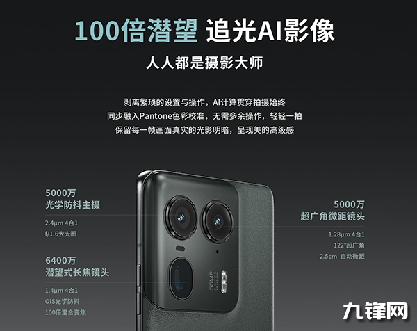 長焦鏡頭規(guī)格,1/2英寸豪威OV64B傳感器,f/2.4光圈,等效焦距72mm,6400萬像素,3倍光學(xué)變焦,光學(xué)防抖。