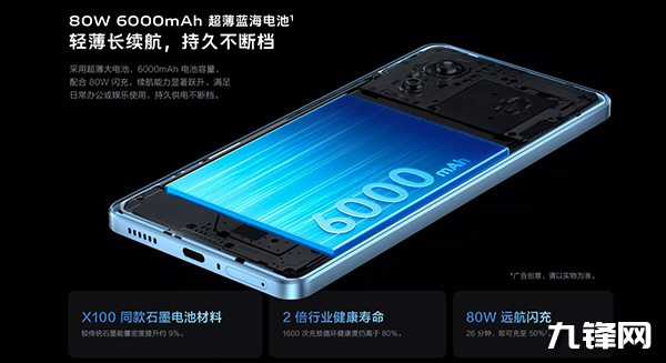 作為一款中端性能機,這次的vivo Y200 GT搭載了大電池和快充,續(xù)航也十分有保障,它內(nèi)置X100旗艦同款極限石墨電池,容量高達6000mAh,并且支持80W遠航閃充。