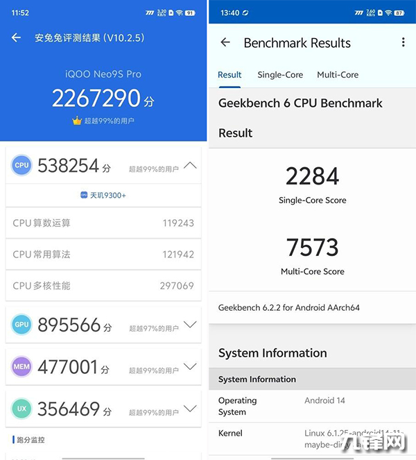 在GeekBench6測試中,iQOO Neo9S Pro單核跑分達到了2284分,多核跑分7573分,表現(xiàn)非常出色。