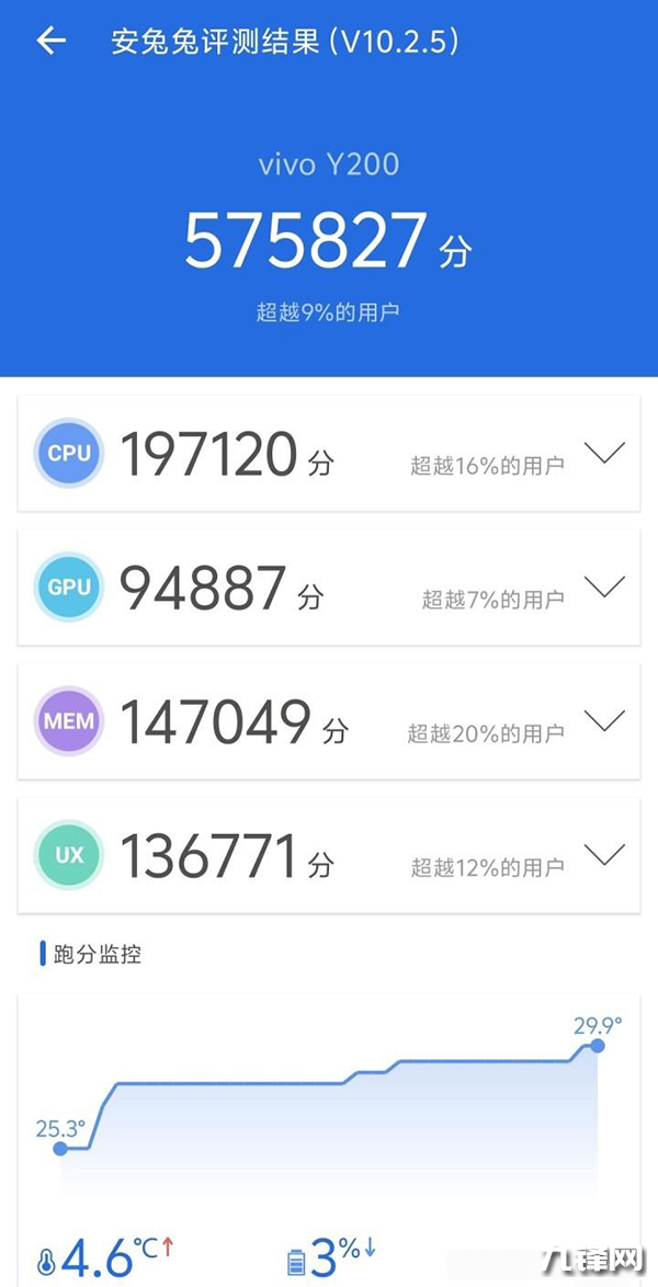 57萬分,vivo Y200搭載的是驍龍6Gen1處理器,在安兔兔中的跑分是575827分,對比一下目前最新旗艦處理器天璣9300+的227萬高分,再看看這個57萬分目前屬于是低端級別的性能水平。