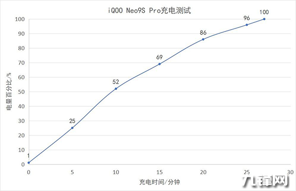 27分鐘左右,iQOO Neo9s Pro配置的是5160mAh電池,以及120W的有線快充,把整個電量充滿需要27分鐘左右,這個充電速度還是相當快的。