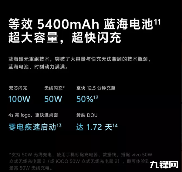 關(guān)于這個(gè)藍(lán)海電池技術(shù)采用負(fù)極石墨重構(gòu)技術(shù),超級(jí)極片冷壓技術(shù)與微米級(jí)激光列陣蝕刻技術(shù),最終實(shí)現(xiàn)了電池能量密度相較于上代提僧8.3%,擁有等效5400mAh超大容量并且還支持100W雙芯閃充技術(shù),vivo這次是把點(diǎn)電池玩明白了。