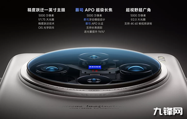 另外,還采用的蔡司APO超級長焦,是全球率先在移動影像打上「APO」標志的鏡頭,配備了f/2.5超大光圈,等效信距是100m,同樣支持OIS光學防抖。