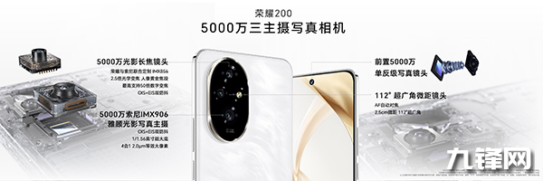 其中,榮耀200配置了索尼IMX906的主攝,結(jié)合112°超廣角微距鏡頭、以及最高支持50倍變焦的光影長(zhǎng)焦鏡頭,在不同光線(xiàn)和拍攝場(chǎng)景下都能實(shí)現(xiàn)高質(zhì)量的專(zhuān)業(yè)影像表現(xiàn)。