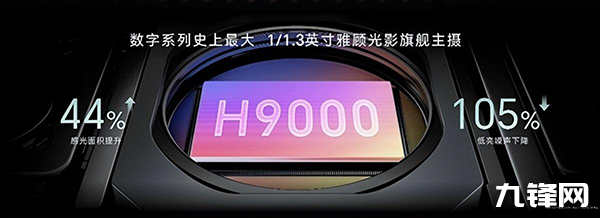 其中主攝為雅顧光影旗艦主攝H9000,擁有1/1.3英寸超大底,是榮耀數(shù)字系列史上最大,可以四合一達到2.4μm等效大像素,感光面積提升44%,低亮噪聲下降105%,并且支持AF+OIS二合一記憶金屬馬達,讓對焦更加迅速,成片率更高。