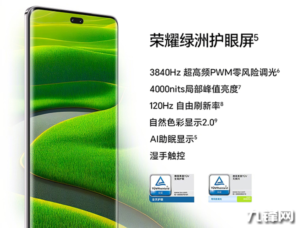 這次的榮耀200系列屏幕都是延續(xù)榮耀綠洲護眼屏+五大護眼技術(shù),支持120Hz刷新率+支持3840Hz超高頻PWM調(diào)光,通過了德國萊茵TüV無頻閃與全局護眼3.0雙重認證,區(qū)別就是,Pro采用懸浮流線四曲屏設(shè)計,屏幕R角抗褶皺性能達到業(yè)內(nèi)頂尖水準,邊框視覺等距。