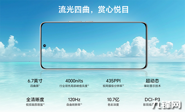 具體來看,它采用的是一塊6.7英寸全等深懸浮四曲屏,局部峰值亮度達(dá)4000nits,支持120Hz刷新率、10.7億色深、DCI-P3廣色域、濕手觸控及全屏AOD等,通過了德國萊茵TUV無頻閃認(rèn)證。