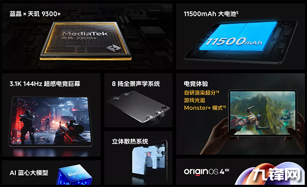 其它方面:3D全景音頻、8個揚聲器的全景聲學系統(tǒng)、10.48 cc超大音腔、自研Super Audio 5.0音效、AI人聲增強,WiFi 7,USB3.2 Gen1,無指紋解鎖,藍牙5.4,支持NFC,藍心小V、AI筆記創(chuàng)作、原子筆記AI涂鴉,搭載OriginOS 4系統(tǒng)。