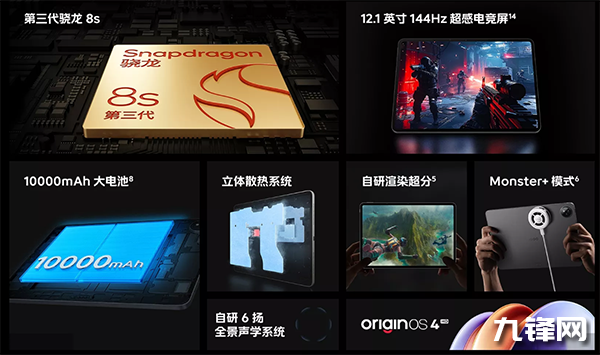 屏幕:尺寸是12.1英寸,LCD材質(zhì)的直屏,屏幕比例為7:5,分辨率為2800×1968(屬于2.8K級別),峰值亮度600nit,最高支持144Hz刷新率,10.7億色顯示,支持HDR10,P3廣色域,支持“多屏同色”功能,通過了萊茵低藍光認(rèn)證;相機: