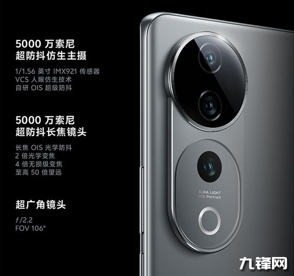 在相機(jī)方面,vivo S19 Pro前置5000萬(wàn),后置5000萬(wàn)像素主攝(IMX921)+800萬(wàn)超廣角+5000萬(wàn)長(zhǎng)焦,支持光學(xué)、電子防抖,50倍數(shù)碼變焦,2倍光學(xué)變焦。