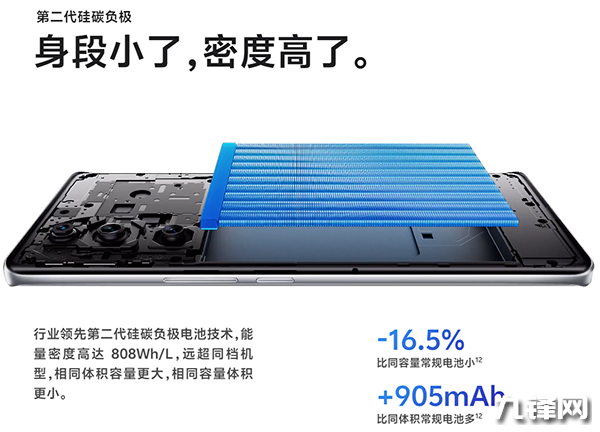它采用新一代硅碳負(fù)極材料的藍(lán)海電池,其能量密度比普通石墨負(fù)極電池高出約20%,比極限石墨負(fù)極電池高出約16%。該電池將由vivo S19系列手機(jī)搭載,寧德新能源供貨。