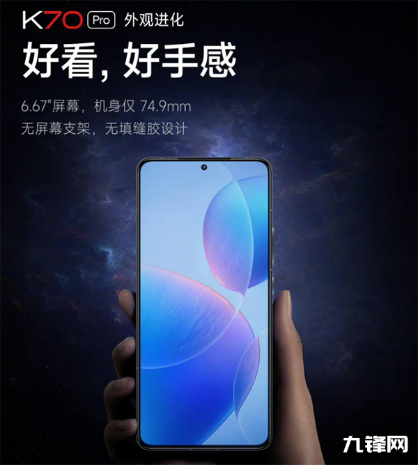 它搭載了一塊6.67英寸居中打孔屏,機身厚度僅74.9mm,且取消了屏幕支架,這樣的設(shè)計使得手機側(cè)面一體化更強,屏幕與邊框齊平,提升了手感和觀感。