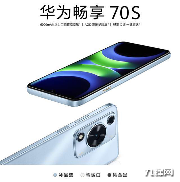華為暢享70S延續(xù)了經(jīng)典對(duì)稱和矚目星環(huán)的設(shè)計(jì)風(fēng)格,并提供冰晶藍(lán)、曜金黑、雪域白三種潮流配色可選。