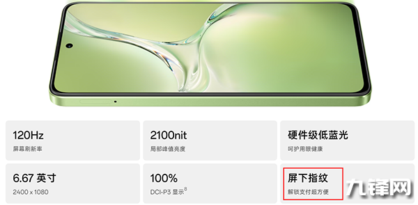 并且它配置的是6.67英寸OLED屏,直面屏設(shè)計(jì),邊緣處操作更精準(zhǔn),分辨率為2400*1080,像素密度394 PPI,支持120Hz高刷,局部峰值亮度高達(dá)2100nit,全局亮度1200nit,太陽(yáng)光底下也能看得清。
