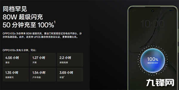 在充電方面,OPPO K12x支持80W超級(jí)閃充,這在同檔手機(jī)中,是很高的配置存在,可謂遙遙領(lǐng)先。